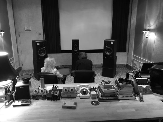Goldsmith's Academy award for "The Omen" as well as his many Emmys are prominent on the shelfs in the background.